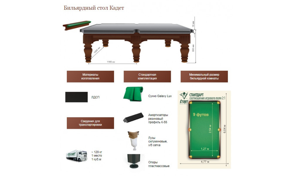 Бильярдный стол Кадет
