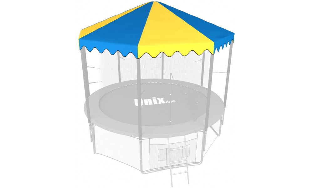 Крыша для батута UNIX line прекрасно защитит Вас и Ваших детей как от солнца, так и от дождя. Прочная металлическая конструкция каркаса крыши надежно закрепляется на стойках защитной сети, а плотный ПВХ материал крыши препятствует проникновению осадков и ультрафиолетовых лучей. Данная модель крыши для батута подходит к следующим моделям батутов: Батут UNIX line Simple 8 ft Color (inside) Батут UNIX line Simple 8 ft Green (inside) Батут UNIX line Classic 8 ft (inside) Батут UNIX line Black&Brown 8 ft (outside) Батут UNIX line Black&Brown 8 ft (inside) Батут UNIX line Classic 8 ft (outside)